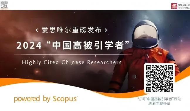 2025年3月25日,爱思唯尔(Elsevier)正式发布2024“中国高被引学者” (Highly Cited Chinese Researchers)榜单。此榜单以全球权威的引文与索引数据库Scopus作为中国学者科研成果的统计来源,采用上海软科教育信息咨询有限公司开发的方法,2025年已是双方合作进行的第十一次发布,并受到国内外众多媒体和学者的高度关注。